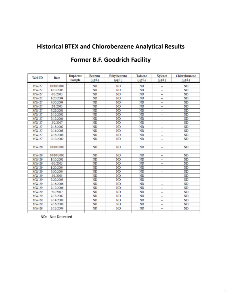 “DEQ has strong evidence from 2000 through 2009 that benzene from the former BF Goodrich Plant was never present in the groundwater near the adjacent Miami Head Start or Nichols Elementary School. DEQ suggests,