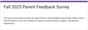 Your feedback is important to us. Please complete the parent feedback survey that will allow families to share what is working well in our schools and where